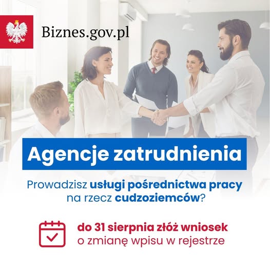 – Masz czas do 31 sierpnia 2025 r., aby złożyć wniosek o zmianę wpisu w rejestrze agencji zatrudnienia.
