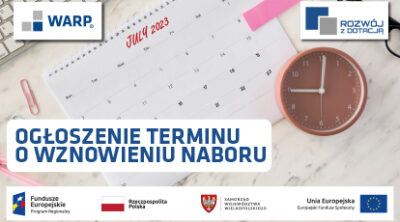 Wielkopolska Agencja Rozwoju Przedsiębiorczości Sp. z o.o. w dniu 27 lipca 2023 roku wznowi nabór wniosków do projektu Rozwój z […]